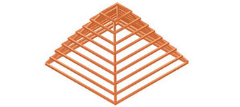 1. Forme a base da pirâmide com as ripas de 1,68 metro de comprimento. Em cada canto interno deste quadrado, pregue verticalmente as madeiras de 1,70metro de comprimento. Na outra extremidade desses pedaços, fixe horizontalmente as ripas de 30 centímetros de comprimento formando o topo da pirâmide