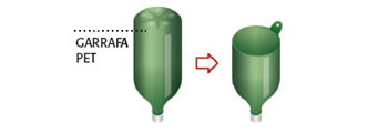 Com o estilete, faça uma abertura de 13 por 20 centímetros nas três garrafas. Duas delas, que servirão de jardineiras, devem ser furadas na parte de baixo para que a água escorra . A terceira garrafa terá a função de armazenar a água excedente da rega.