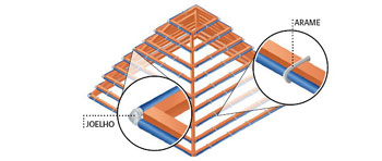4. Recorte a mangueira de acordo com o tamanho das ripas que formam cada andar e prenda à estrutura com o arame de 12 polegadas. Encaixe os joelhos nos três cantos da pirâmide, ligando as mangueiras do mesmo andar
