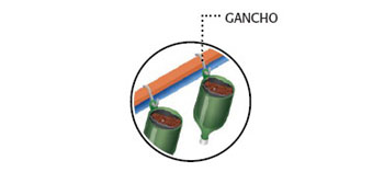 8. Retire o algodão dos cotonetes. Fure as mangueiras de cada andar com um prego da espessura do cotonete e insira rapidamente as hastes para aproveitar o reaperto da mangueira. Não utilize ferro ou prego quente para não danificar a borracha. Coloque os microaspersores na direção das garrafas